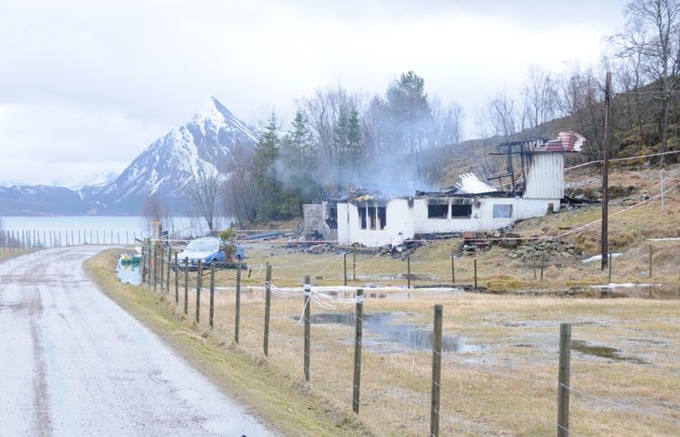 AktueltEn enebolig i Brunes i Steigen brant i natt ned til grunnen. Familien på fem kom seg uskadd ut av huset.