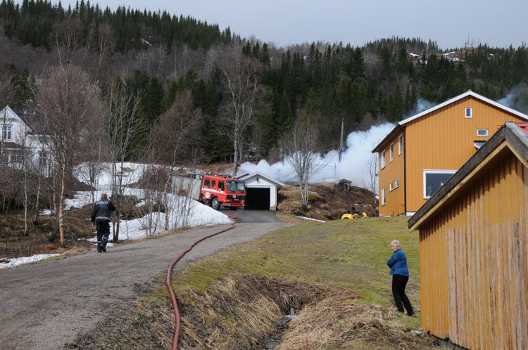 AktueltEn garasje i Nordfold med en bil inni brant ned til grunnen i dag. Brannvesenet fikk melding om brannen like etter kl. 12.30, men garasjen var helt overtent da de ankom stedet.
