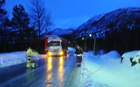 AktueltEn polsk semitrailer ble i ettermiddag stående fast og sperret veien i Ågotskaret mellom Leinesfjord og Saursfjord.