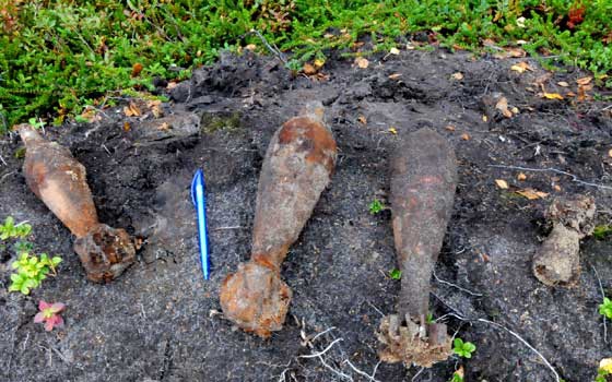 AktueltArbeidslagene til potetdyrker Thor og Tove Holand på Engeløy i Steigen tok i går opp tre bombekastergranater sammen med mandelpotetene.