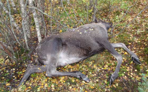 Aktuelt Lund jaktlag fant en død elg i området ved krysset der veien tar av til Båtberget. Mye tyder på at den er felt før elgjakta startet, og dermed er ulovlig felt.