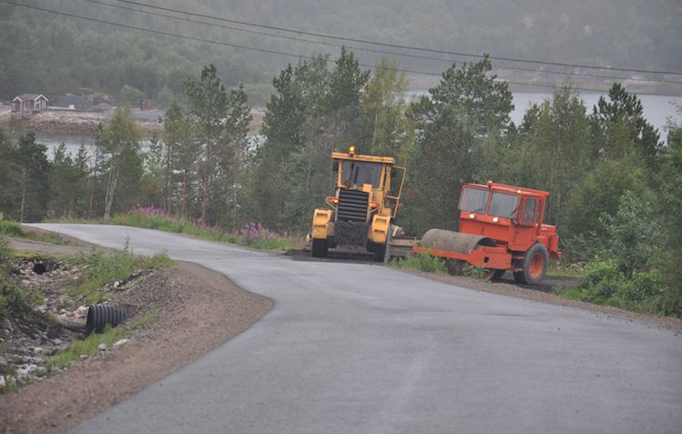 DiverseNorasfalt er i gang med asfaltarbeidet på Finnøyveien i Hamarøy og har kommet godt i gang.