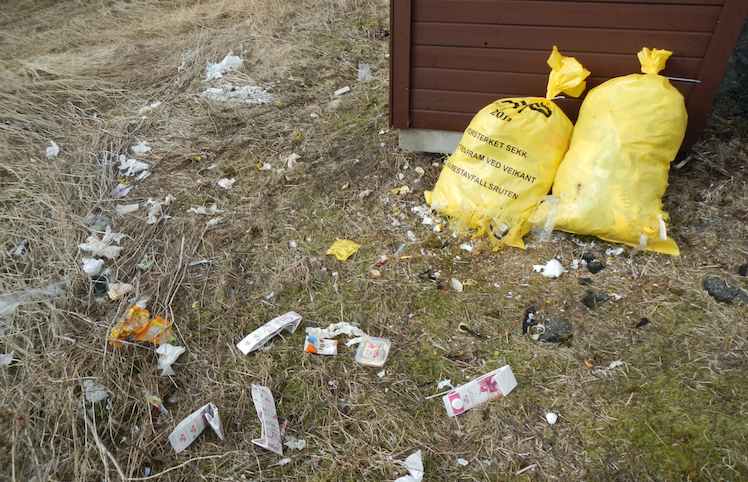 DiverseHer ser vi hvordan søppelsekkene fra hytte-eierne i Hamarøy ser ut etter at kråker og måker har hatt fest. Ikke noe særlig vakkert syn, verken for fastboende eller tilreisende. Hvorfor kan man ikke finne en bedre løsning for søppelhåndteringen? Fungerte ikke søppeldunkene som vi hadde før?, spør Geir Winther.