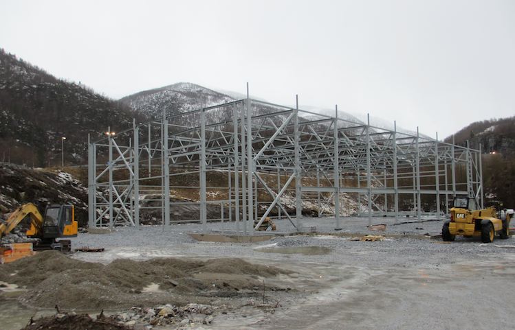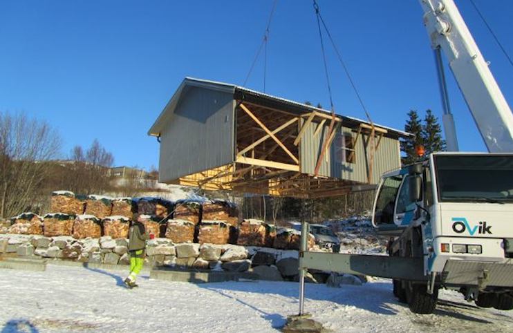 DiverseHamarøy Vekst har hatt stor flyttesjau. Oviks kranbil var en rask tur på Hamarøy og løfta vedbygget over på nystøpt mur.
