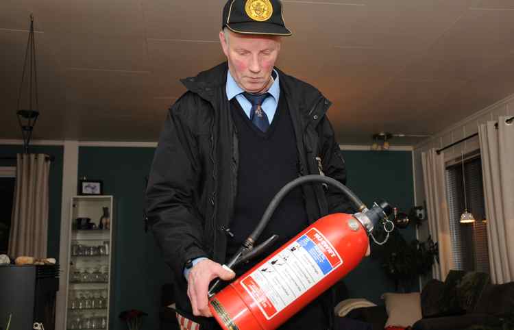 Diverse- Denne typen brannslukningsapparater er det bare å levere til Iris. De er gått ut på dato og må skiftes ut snarest, sier feier Gunnar Pettersen i Salten Brann.