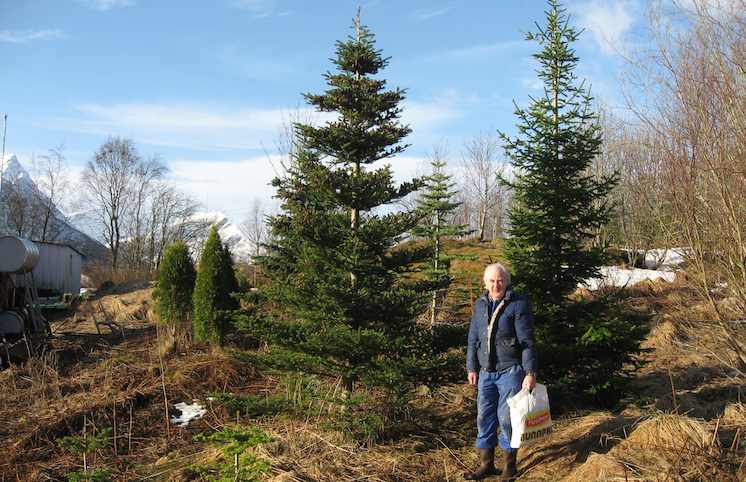 DiverseTo forskere var denne uka i Steigen for å ta prøver av sitkagran. Målet er å finne ut om den tresorten egner seg som brensel i flisfyringsanlegg.