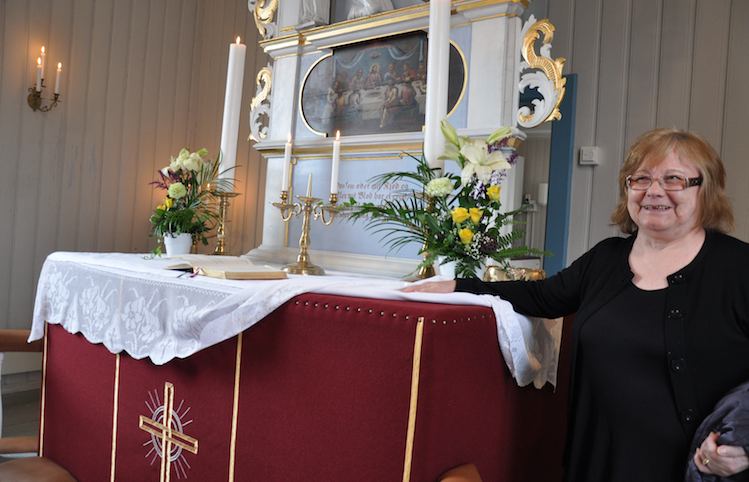 DiversePalmesøndag kunne Sagfjord menighet «innvie» det nye antependiumet i Karlsøy kirke. Syerske Sigrun Andersen fra Innhavet står for det flotte arbeidet.