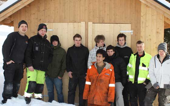 DiversePå Hamarøy Bygdeheim finner vi ungdom fra byggfagklassene Knut Hamsun videregående skole i full gang med oppføring av bygg til den påbegynte sansehagen.