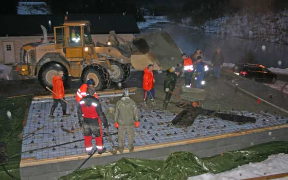 DiverseDårlig vær torsdag i forrige uke hindret ikke at hel gjeng stilte til dugnad for å få støpt gulvet til det nye skytterhuset i Kjøpspvik.
