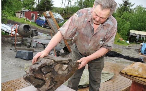 Arthur Pettersen (72) fant en merkelig stein da han fordelte overskuddsmasse fra byggingen av Holkestadveien.