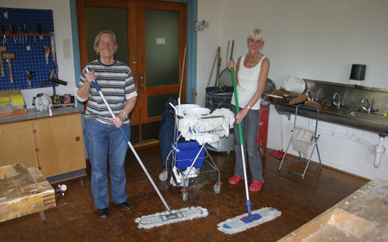 Diverse Ved Kjøpsvik skole kan en stadig møte en renholder som i en alder av snart 78 år fremdeles svinger moppen på skolegulvene.