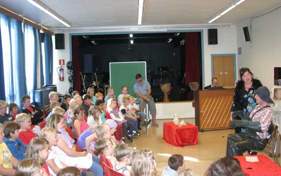 KulturUngene på barnetrinnet ved Kjøpsvik skole koste seg i aulaen på skolen tirsdag denne uka da Musikk i Nordland presenterte historien om Madame Krystall, Jussi Gjedda og stakkars Pianist Hansen.
