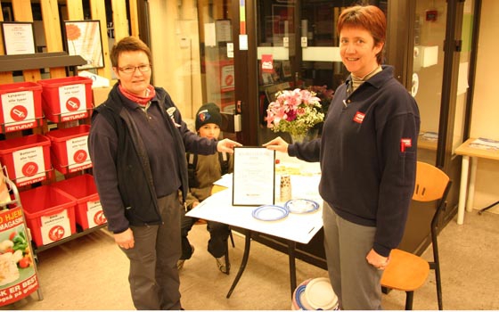 Forrige mandag var distriktssjef i posten, Håvard Kjærstad, i Kjøpsvik for å overlevere diplom, blomster og kake til Coop Marked Kjøpsvik.