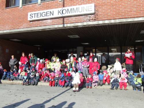 For tredje året på rad markerte barnehagene i Steigen denne dagen med felles opptreden på rådhustrappa i Leinesfjord, besøk på Steigentunet og avslutning med saft og pølser i grillhuset til barnehagen i Leinesfjord.