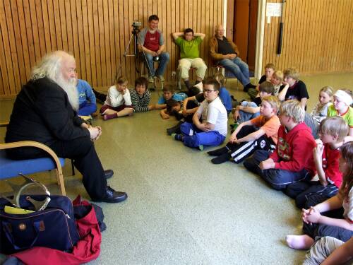 Kultur4.-klassingene fra Kjøpsvik og Drag, samt elevene fra Musken skole, fikk være med på en reise i Jack Berntsens eventyrverden sist tirsdag.