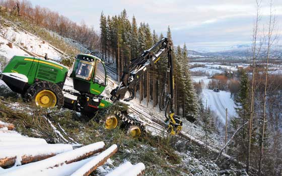 Det må være nervepirrende å være skogsmaskinkjører når terrenget er så bratt som på Sund i Steigen. Men for Skoging AS er ingenting umulig.