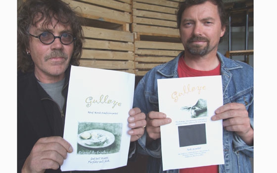 Med tegninger av kunstner Hugo Aasjord har Thor og Henning Holand fått desigent egne potetsekker – kun for den nordnorske potetsorten Gulløye.