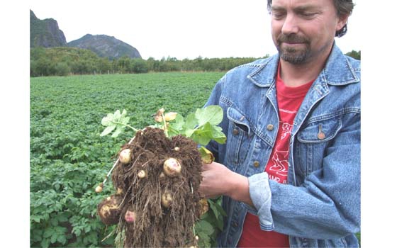 Den tørre sommeren gir et betydelig avlingstap for potetprodusent Thor Holand i Steigen. Kanskje helt opp mot 50 prosent.
