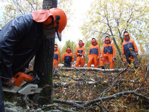 Arbeiderne som skal rydde skogen langs veien mellom Botn og Leinesfjord i noen uker framover må først gjennomføre et sikkerhetskurs i skogsarbeid.