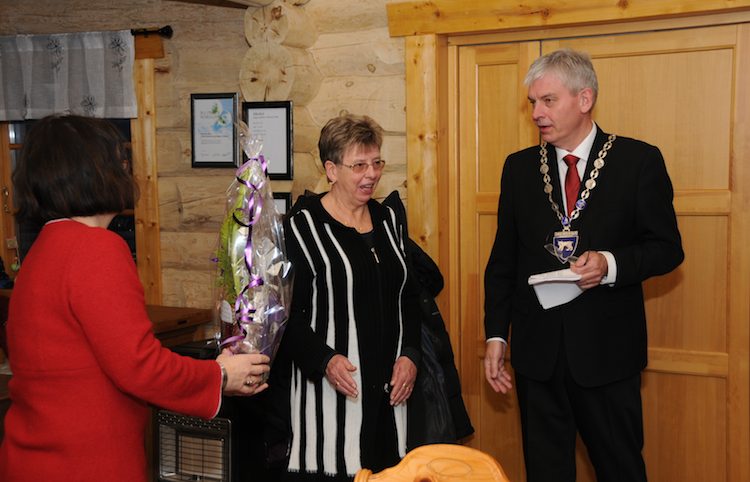 PolitikkOrdfører Rolf Steffensen og rådmann Elin Eidsvik gjorde ekstra stas på noen som har jobbet lenge i Hamarøy kommune under kommunestyrets julelunsjen på Øverås gård.