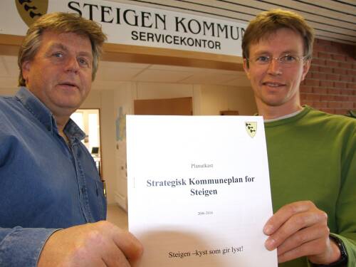 Strategisk Kommuneplan for Steigen er ute på høring. Innen 1. juni må alle tilbakemeldingene ha kommet til kommunen for å bli vurdert tatt inn i planen, og kommunalsjef Inge Albriktsen og plan- og miljøvernleder Gunnar Svalbjørg ber innstendig om at folk leser planen og kommer med innspill. Bare da blir det en komplett plan.