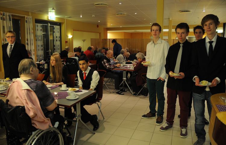 SkoleForrige onsdag fikk beboerne på Steigentunet en uventet servering. Arbeidslivsklassen på Steigenskolen stilte nemlig opp med selvbakt julegeit og bløtkake - og serverte i finstasen.