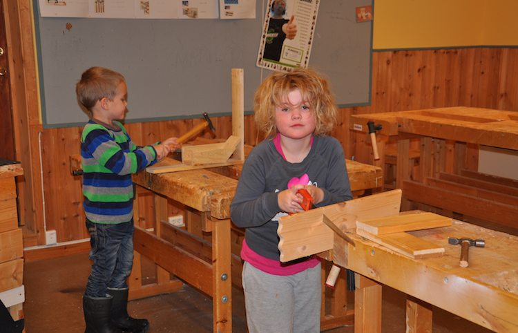 SkoleElias, Leon, Johanne, Ole Tobias og Selja ved Skutvik skole storkoser seg med kunst og håndverk faget. Denne dagen er det nemlig klosser og sløyd som står på programmet.