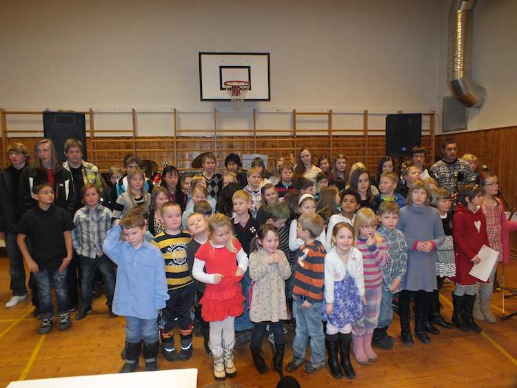 SkoleGymsalen på skolen skulle vise seg å bli i minste laget da rektor Kurt Solberg ønsket velkommen til markeringen av Kjøpsvik skoles 50 års jubileum. Til en fullsatt sal åpnet alle skolens elever med en egen jubileumssang akkompagnert av Kurt på gitar.