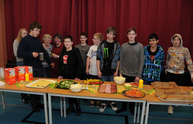 SkoleArbeidslivsklassen på Steigen sentralskole serverte like før påske lunsj til alle de 250 elevene og ansatte på skolen, inkludert voksenopplæringsklassene.