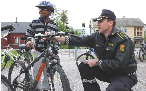 Selveste politiet var til stede og kontrollerte utstyret da elevene ved Steigenskolen avdeling Nordfold hadde sykkeldag.