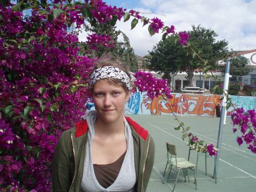 I skolegården som er innrammet av en bugnende, lilla blomsterhekk løper salamanderne fritt langs muren i den varme solen. Sarah Dahl (19) og Albertine Selvik (16) går på skole under Spanias gavmilde sol.