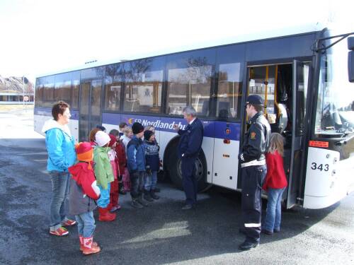 Dette var noe av det de minste skolebarna i Leinesfjord fikk vite av bussjåfør Åge Fure da de var på ”busstrening” for noen dager siden.