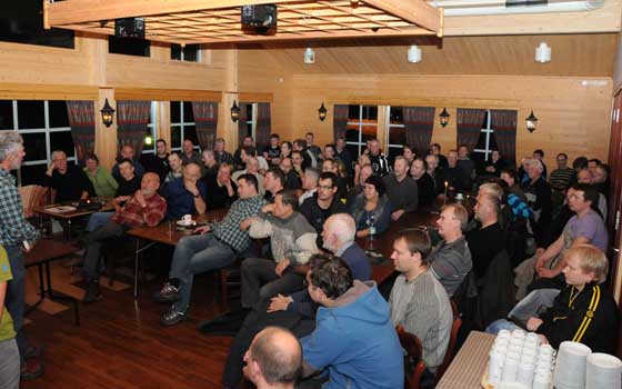 SportNærmere 70 personer fra hele Nord-Salten var samlet på Steigen Vertshus for blant annet å høre Dag Kolsås (t.v.) fortelle om sine opplevelser fra elgjakta.